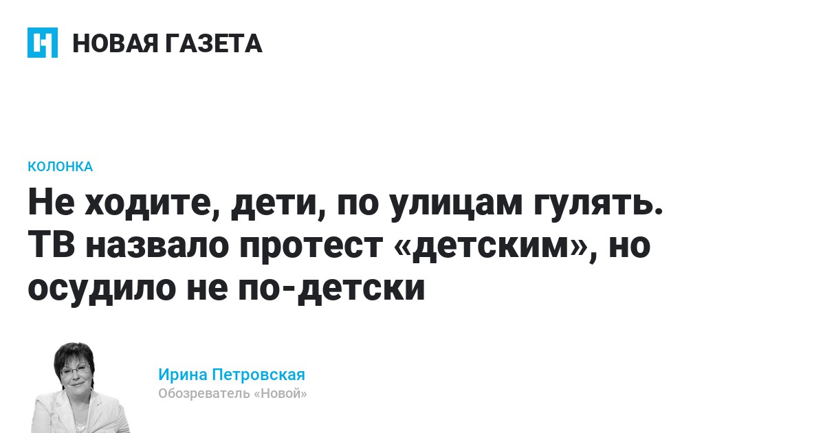 Практически все новостные и общественно-политические программы федеральных каналов по итогам субботних протестных акций дули примерно в одну дуду: «предельно ясно, что организаторы сделали ставку даже не на молодежь, а на детей». Работавшие на улицах городов корреспонденты специально выхватывали из массы протестующих юные лица и заботливых полицейских, за шкирку выволакивающих подростков из опасной зоны («чтобы не затоптали»), и помогающих отцу найти девятилетнюю девочку, потерявшуюся на запруженной бузотерами Пушкинской площади столицы.