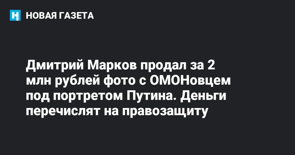 Фотограф Дмитрий Марков продал на благотворительном аукционе за два миллиона рублей свою фотографию с силовиком, сидящим под портретом президента Владимира Путина. Об этом Марков сообщил в социальных сетях.