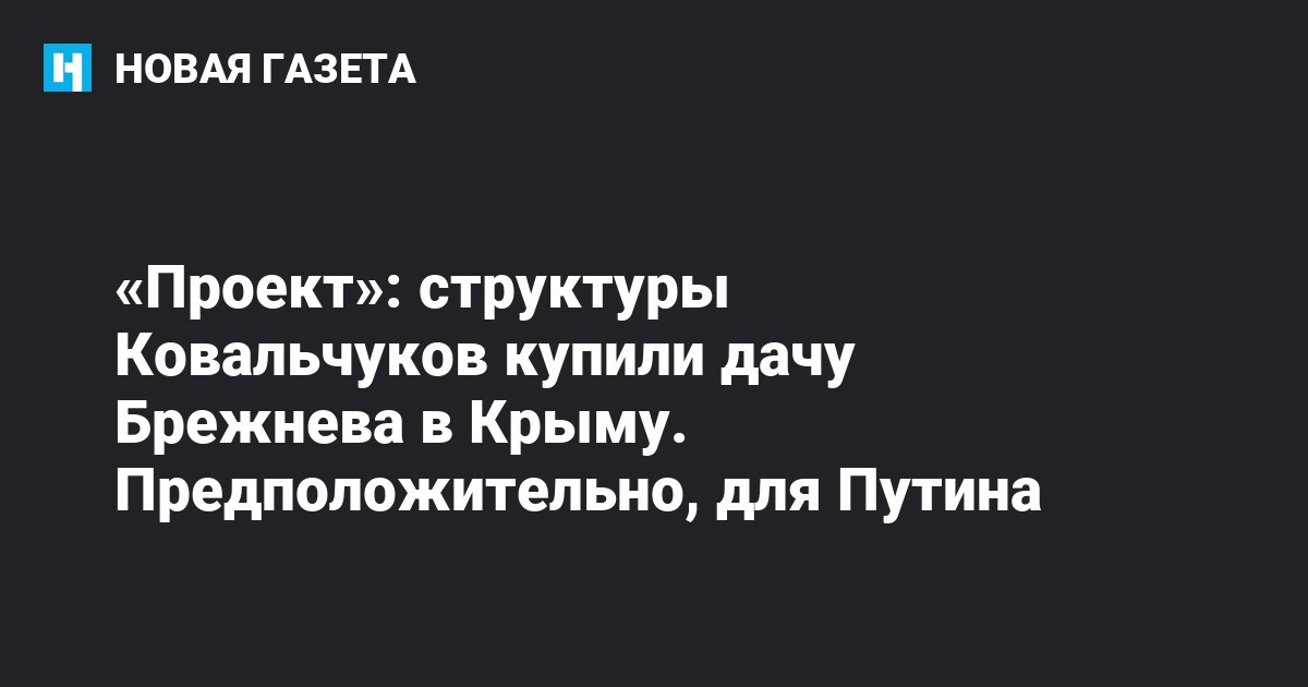 Структуры банка «Россия», крупнейшим инвестором которого является миллиардер и один из соучредителей кооператива «Озеро» Юрий Ковальчук, могли приобрести крымскую дачу Леонида Брежнева «Глициния», утверждается в расследовании «Проекта». Издание предполагает, что особняк на окраине Ливадийского парка купили, вероятно, для президента Владимира Путина.