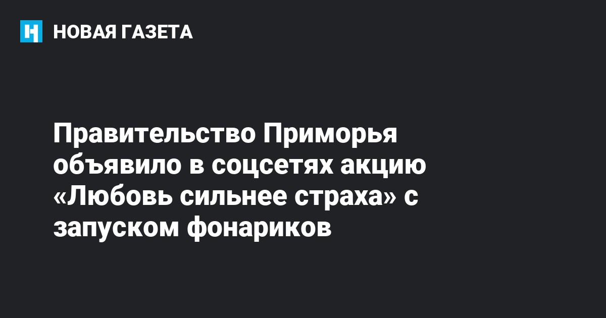 «В рамках акции "Любовь сильнее страха" планируется запуск фонариков по семи точкам в краевой столице», — сказано в официальных аккаунтах приморского правительства в фейсбуке, инстаграме и «ВКонтакте».