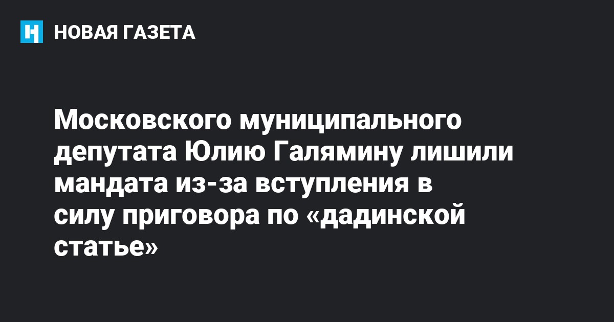 В декабре 2020 года Юлию Галямину приговорили к двум годам условно по «дадинской» статье — за неоднократное нарушение правил проведения публичных акций, митингов, демонстраций и шествий (ст. 212.1 УК РФ). Мосгорсуд 11 марта признал это решение законным.