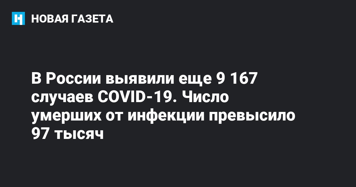 Российские врачи выявили за сутки еще 9 167 случаев заражения коронавирусом. Об этом сообщает столичный оперштаб по борьбе с инфекцией.