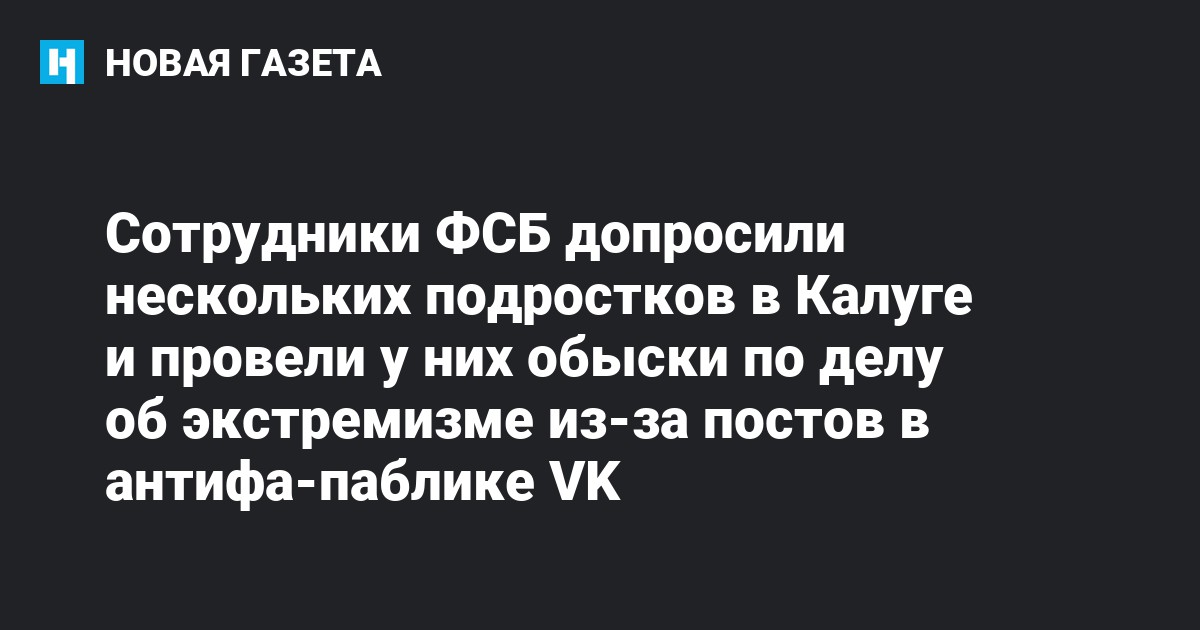 Портал сообщает, что ФСБ допрашивает людей об антифашистском паблике в соцсети «ВКонтакте». По предварительным данным, только один человек стал подозреваемым, остальным присвоен статус свидетелей.