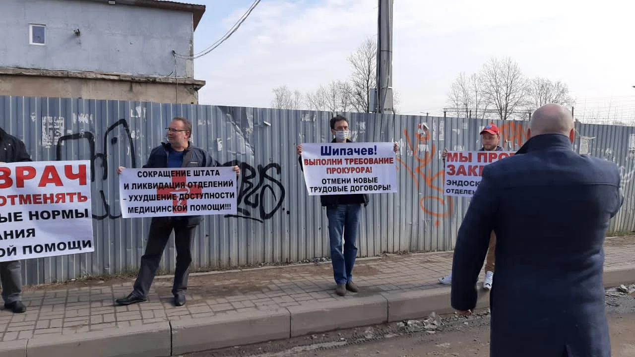 — Я обзвонил участников, пришло меньше людей, чем планировалось, — говорит Владимиров. — Все были уже оповещены, что пикетирование запрещено. Думал, даже не все плакаты удастся развернуть. Но проходившие мимо люди, даже не имеющие отношения к медицине, подходили, брали плакаты и вставали рядом. Потому что даже простым обывателям стало ясно, что «оптимизация Шипачева» ведет к фактическому разрушению механизма оказания медицинской помощи в нашем районе.