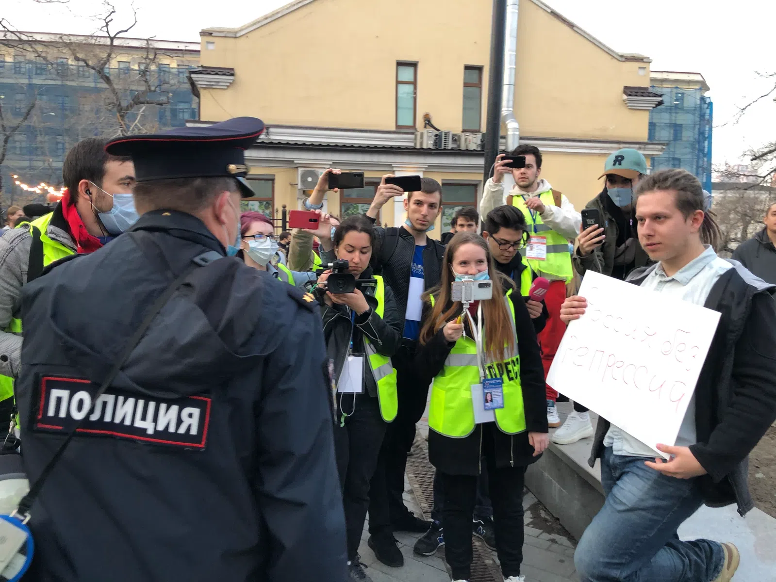 К 19.00 по местному времени на площади Борцов за власть Советов журналистов и силовиков было больше, чем митингующих. Все выглядело точь-в-точь как перед митингом 31 января, когда задержали больше сотни человек.