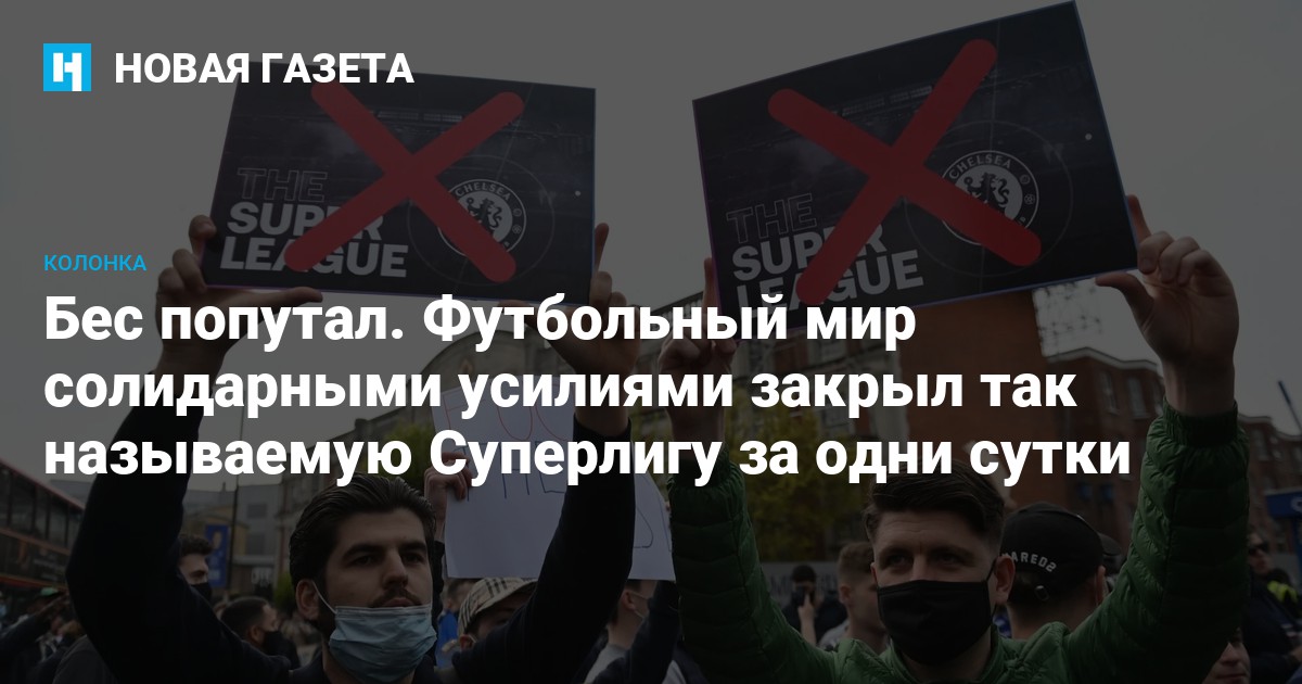 В итоге к ночи организаторы Суперлиги поняли, что остаются наедине с меморандумом о намерениях, а к утру у них не останется ни одного участника. Так, собственно, и произошло: официально первым отказался закрывать амбразуру «Манчестер Сити», следом — «Челси», и пошло-поехало. Естественно, на столь массовое отступление повлияли и очень жесткая реакция УЕФА — вплоть до полного исключения и клубов, и футболистов из любых соревнований под своей эгидой, и не менее жесткие меры по отношению к своим клубам со стороны премьер-министра Бориса Джонсона, и совокупная, практически единодушная реакция авторитетных специалистов и тренеров и, конечно, подавляющей части болельщиков. Вот бы мир в едином порыве мог сказать «нет!» другим, гораздо более серьезным угрозам для человечества, но что имеем, то имеем.