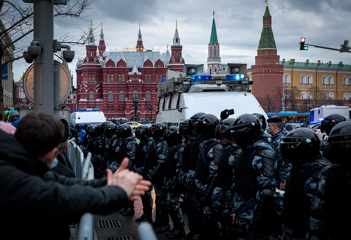 К 19 часам на площади — около 500 протестующих. Полицейские перекрывают все подходы к Кремлю. «Допус-кай вра-чей! Допус-кай вра-чей!» — скандируют собравшиеся. Достают плакаты с надписями «Свободу Навальному». «Космонавт» в черном бронежилете через громкоговоритель требует от протестующих соблюдать масочный режим и социальную дистанцию. Его коллеги в это время без всякой дистанции кучкуются у автобусов. На полицейских нет нагрудных жетонов.