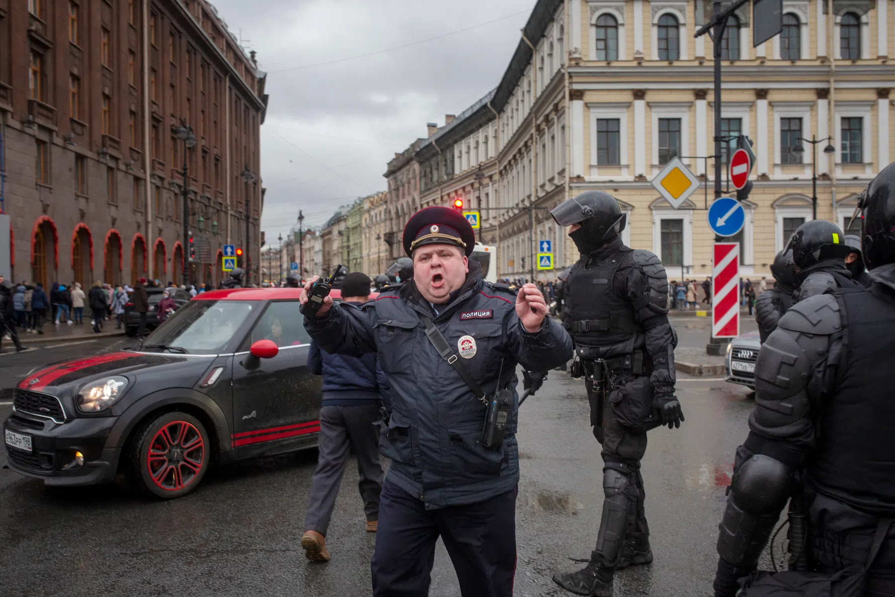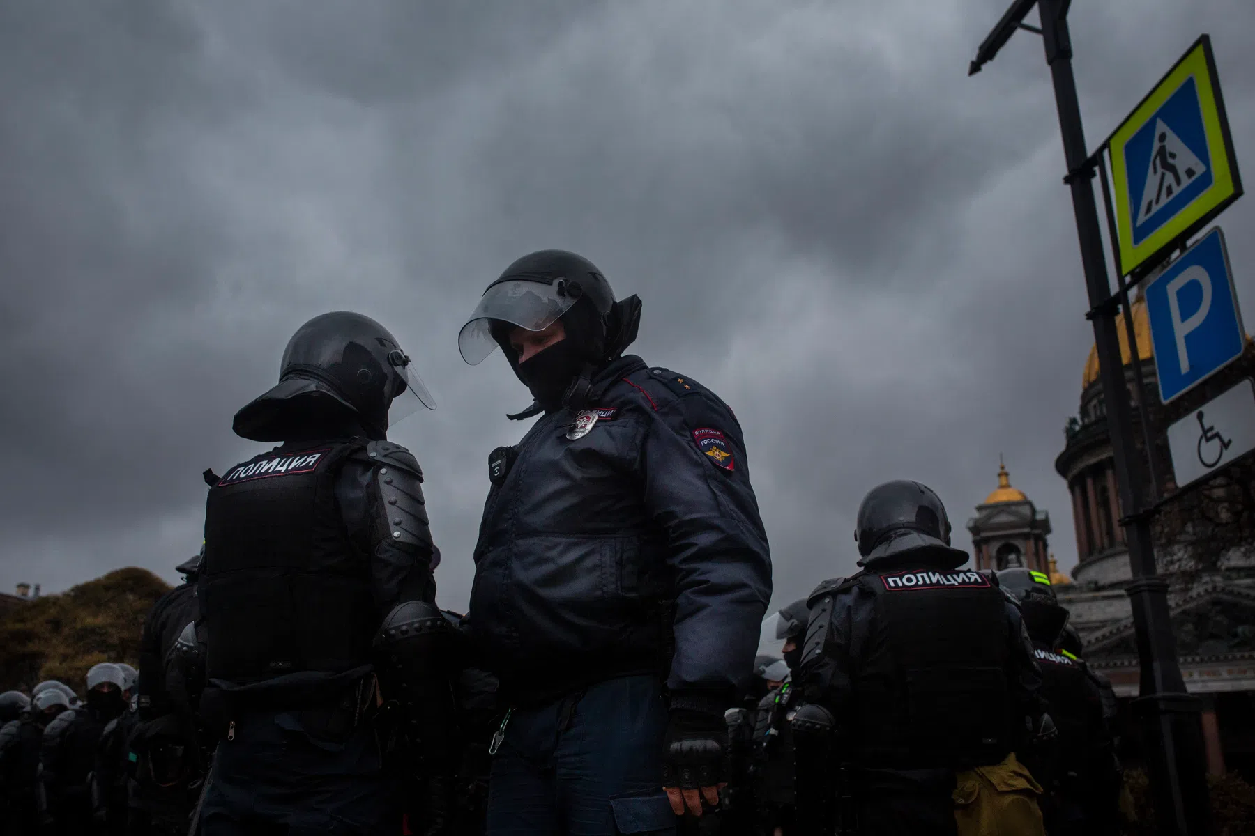 "I AM 65-YEARS-OLD. I'M SHORT OF BREATH, AND I HAVE HIGH BLOOD PRESSURE. I'LL DIE HERE," says another protester attacked during the crackdown. Back in January, St. Petersburg police were also noticeably hard on protesters, with one drawing an actual gun in the street and others electrocuting protesters.