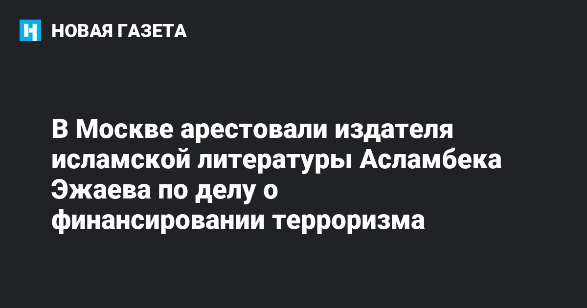 Пресненский суд Москвы арестовал до 27 июня 58-летнего главу издательства исламской литературы «Умма» Асламбека Эжаева по делу о финансировании терроризма. Об этом сообщает «Кавказский узел» со ссылкой на адвоката издателя.