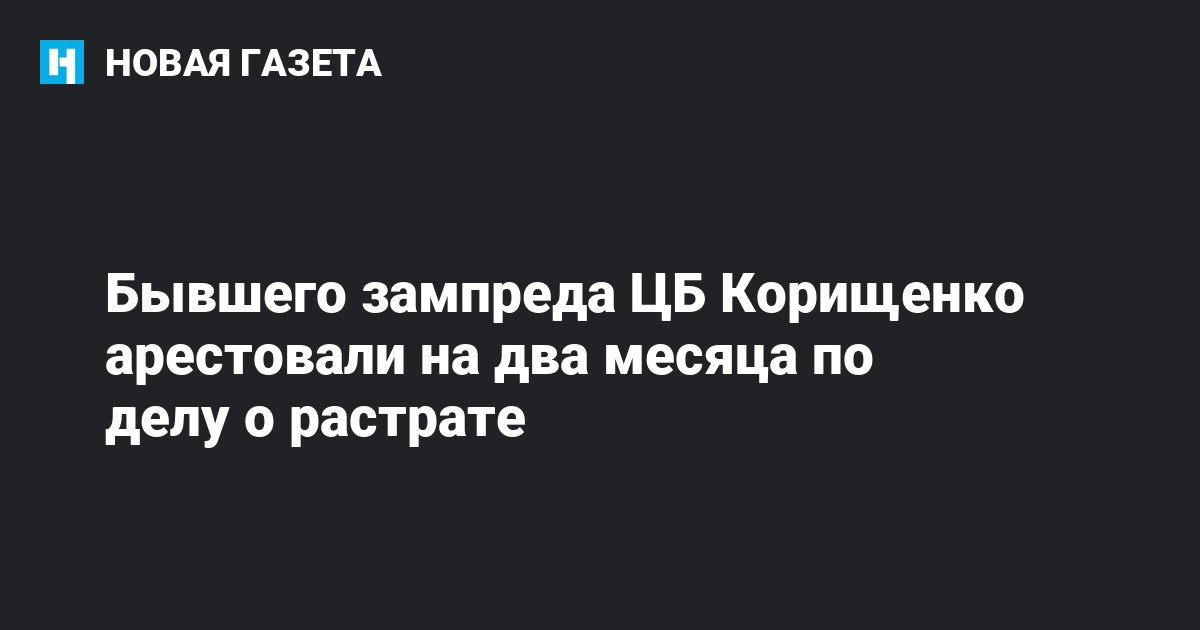 Тверской районный суд Москвы на два месяца арестовал бывшего зампредседателя Центробанка и заведующего кафедрой РАНХиГС Константина Корищенко по делу о растрате в особо крупном размере (статья 160 УК). Об этом сообщает РИА Новости.