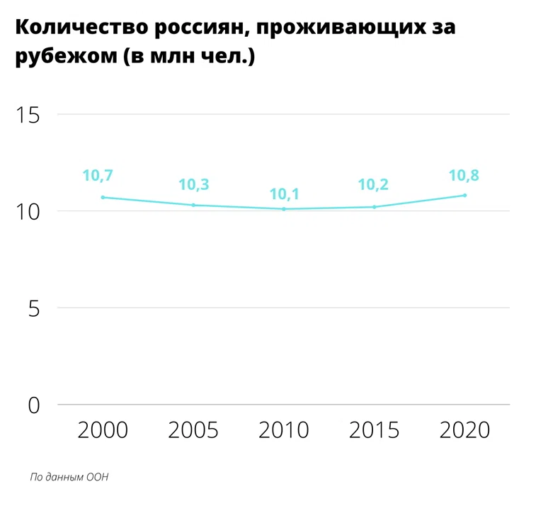 По подсчетам же ООН, постоянно за пределами России в 2020 году проживало около 10,8 миллиона россиян. С 2015 года, после десятилетнего снижения уровня эмиграции, эта цифра выросла на 600 тысяч человек. У значительной части есть вид на жительство или второе гражданство.