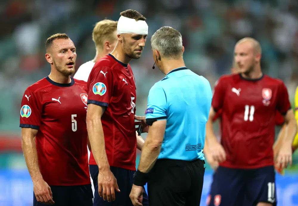 Капитан сборной Чехии Томаш Соучек (в центре), получивший травму во время матча с Данией. Фото: ЕРА