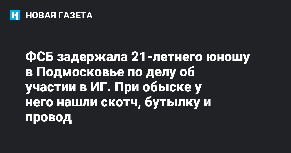 Сотрудники Следственного комитета и ФСБ задержали в Подмосковье 21-летнего юношу, которого они считают боевиком «Исламского государства» (признано международной террористической организацией и запрещено в России). Силовики считают, что задержанный готовил теракт, передает РИА Новости.