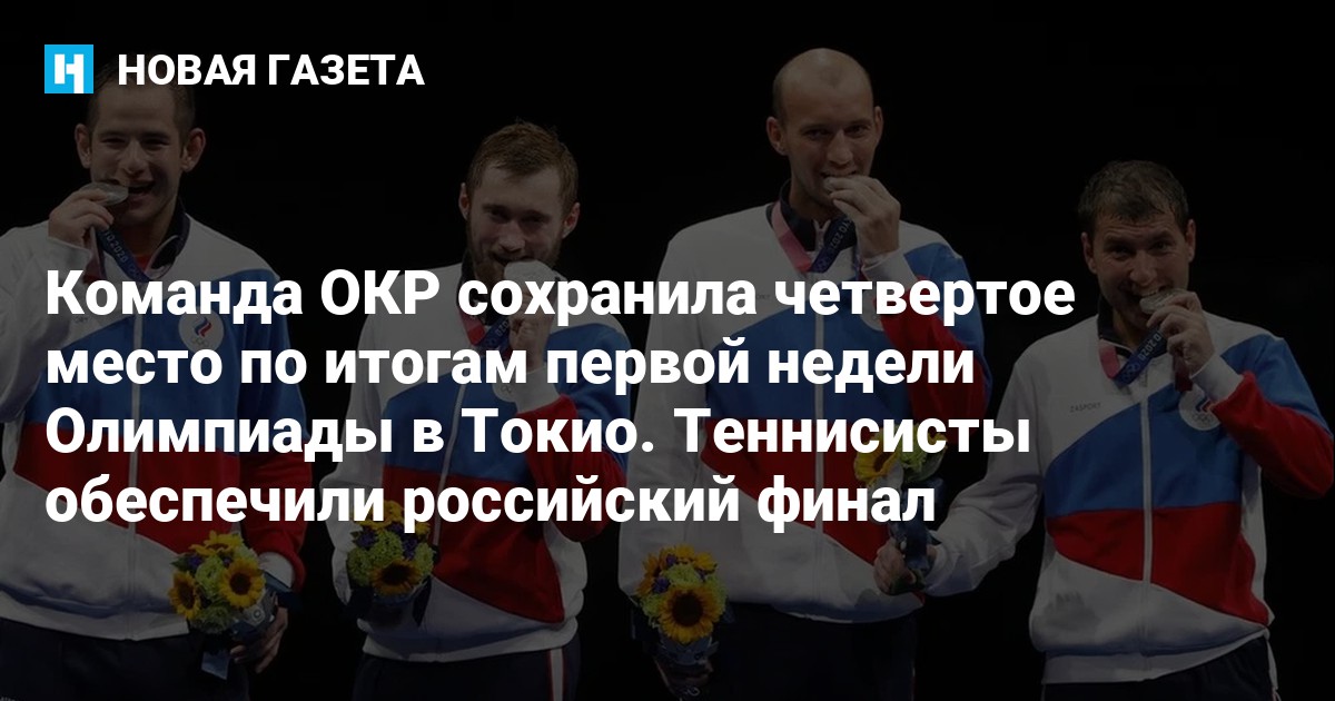 Команда Олимпийского комитета России (ОКР) сохранила четвертое место по итогам семи дней летних Олимпийских игр в Токио. У россиян 34 медали, 10 из них — золотые. Лидеры общего зачета — Китай (40 медалей, 19 — золотые).