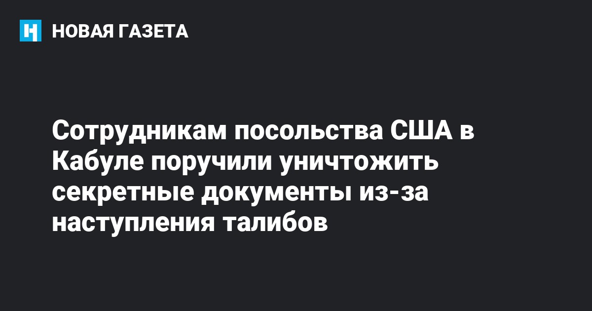 На фоне обострения ситуации в Афганистане сотрудников посольства США в Кабуле обязали уничтожить секретные документы. Об этом сообщают CNN и Bloomberg.