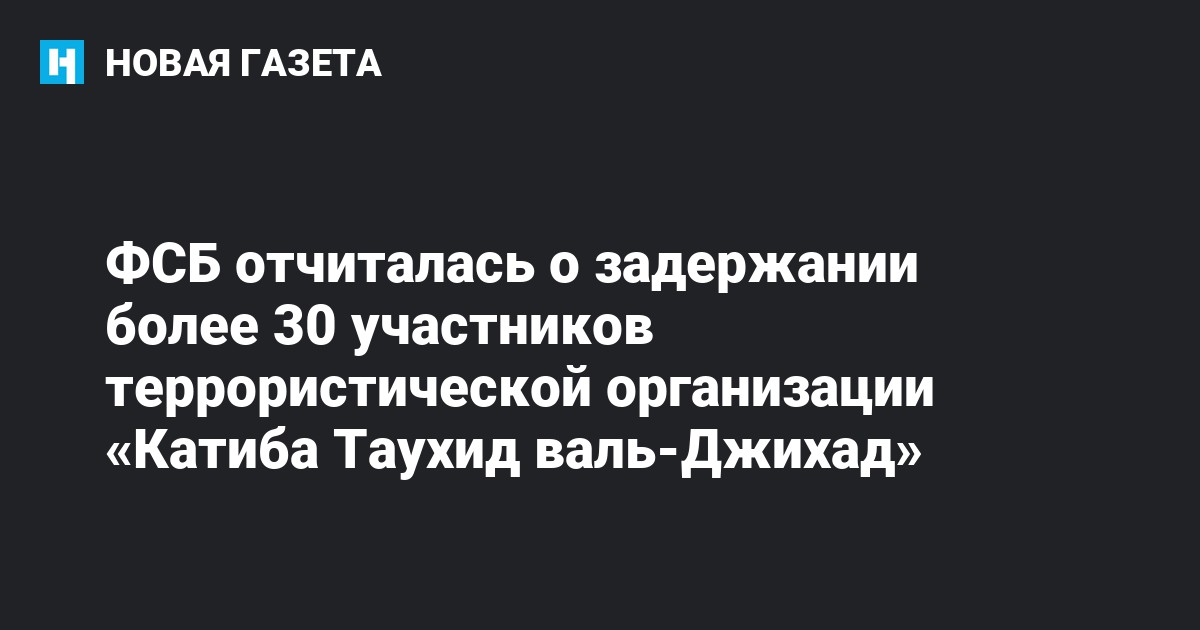 Федеральная служба безопасности (ФСБ) России рапортовала о задержании в Москве, Новосибирской области, Якутске и Красноярском крае 31 «главаря» и участника запрещенной в РФ террористической организации «Катиба Таухид валь-Джихад». Об этом сообщает ТАСС со ссылкой на Центр общественных связей ФСБ.