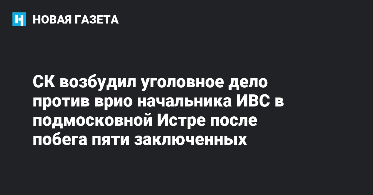 Следователи возбудили уголовное дело в отношении исполняющего обязанности начальника изолятора временного содержания в подмосковной Истре, откуда в августе сбежало пятеро заключенных. Об этом сообщает ТАСС со ссылкой следственное управление СК по Московской области.