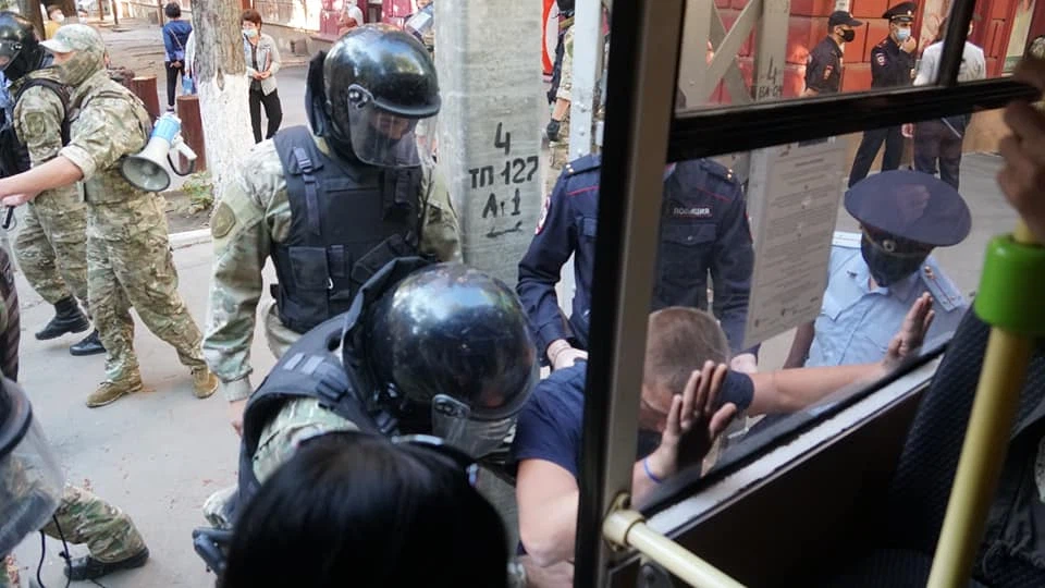 Через 20 минут подъехал автобус Росгвардии. Бойцы начали задерживать всех без разбора.