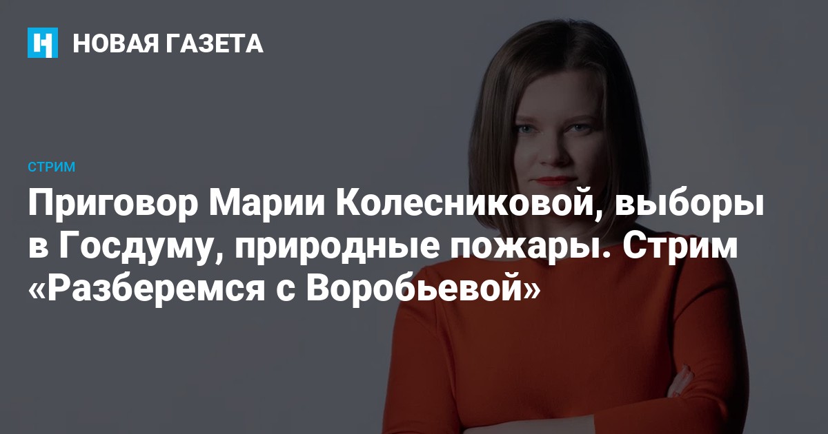 Сегодня Ирина Воробьева обсудит со зрителями приговор политику Марии Колесниковой и юристу Максиму Знака, подготовку к выборам в Госдуму и природные пожары — площадь, пройденная огнем в 2021 году, уже составляет рекордные 17,5 млн гектаров.