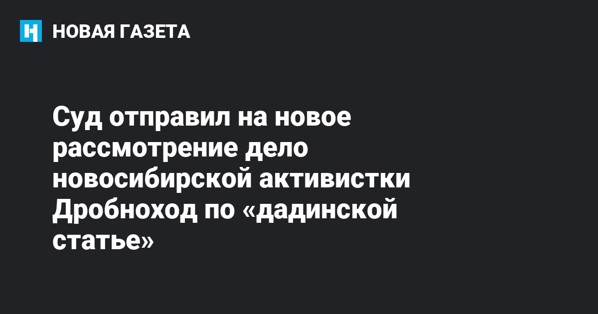 Восьмой кассационный суд отправил уголовное дело новосибирской активистки Яны Дробноход на новое рассмотрение. Об этом сообщает SOTA со ссылкой на саму девушку, а также ОВД-Инфо со ссылкой на адвоката Дмитрия Шитова.