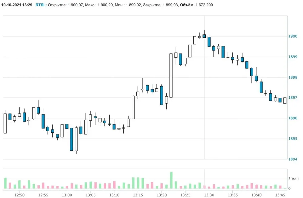 Максимально индекс РТС поднялся до 1 900,29 пункта на 13:29 мск. Позже показатели опустились до 1894 пунктов.