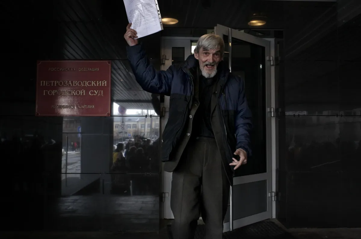 Юрий Дмитриев возле Петрозаводского городского суда после вынесения оправдательного приговора. Фото: Анна Артемьева / «Новая газета»