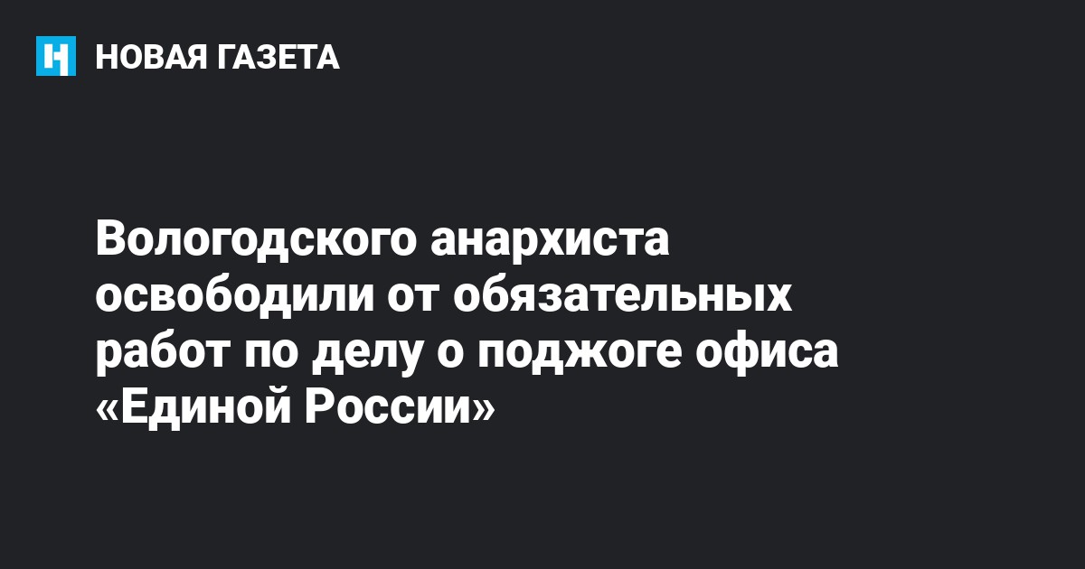 Вологодский облсуд освободил от наказания анархиста Руслана Гатамова, которого ранее приговорили к обязательным работам по делу о поджоге офиса «Единой России». Об этом он сам сообщил «ОВД-Инфо»*.