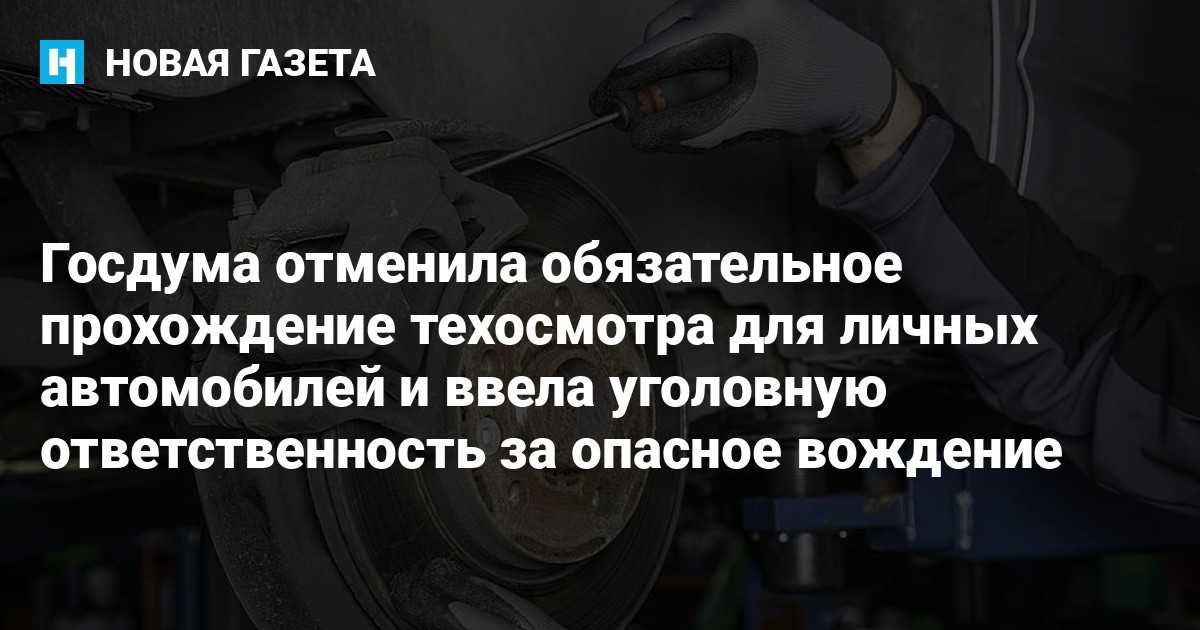 Депутаты Госдумы, которые сегодня уходят на каникулы, приняли закон об отмене обязательного прохождения техосмотра для личных легковых автомобилей. Об этом сообщает ТАСС.