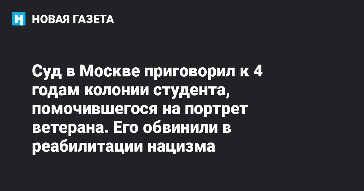 Московский городской суд приговорил к четырем годам колонии 19-летнего студента Российского государственного гуманитарного университета (РГГУ) Матвея Юферова, помочившегося на стенд с биографией ветерана. Об этом сообщается в телеграм-канале московской прокуратуры.