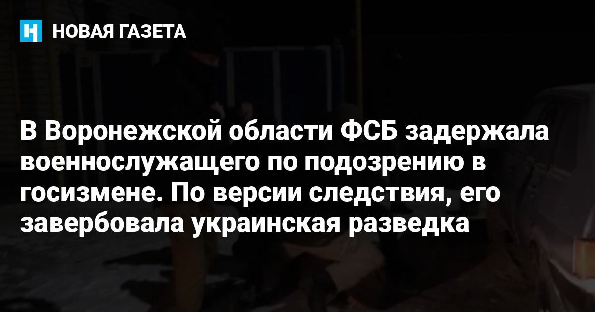 «Сотрудниками ФСБ в Воронежской области по подозрению в совершении преступления, предусмотренного ст. 275 УК РФ («Государственная измена»), задержан военнослужащий Западного военного округа», — сообщили ТАСС в ФСБ.