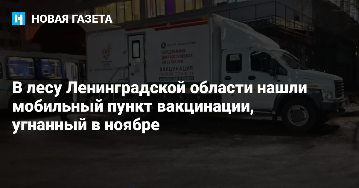 В лесу в Тихвинском районе Ленинградской области нашли мобильный пункт вакцинации, угнанный в ноябре. Об этом сообщает издание «Бумага» со ссылкой на ГУ МВД по Петербургу и Ленобласти.