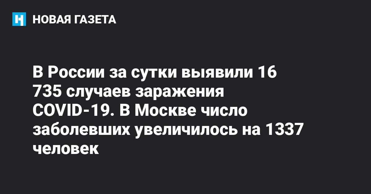 В России за сутки выявили 16 735 случаев заражения COVID-19, сообщает федеральный оперштаб по борьбе с инфекцией.