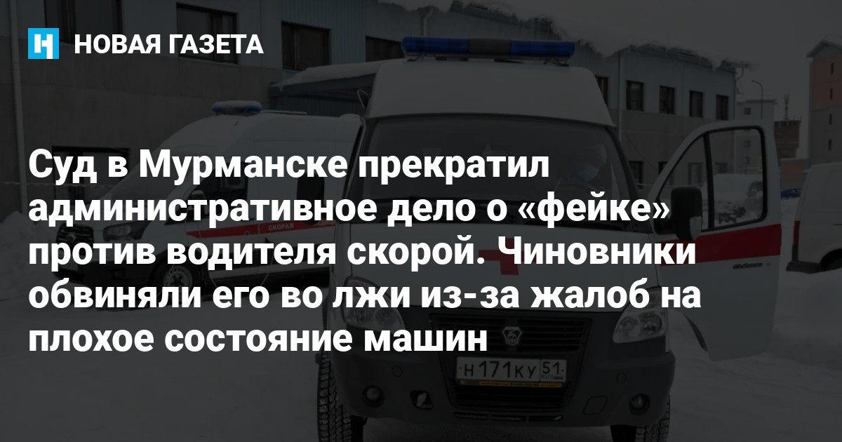 Октябрьский суд Мурманска прекратил дело о распространении «фейков» против водителя скорой помощи Александра Казака, сообщила защитник Казака Юлия Мигина. На мужчину был составлен административный протокол за публикацию о смерти пациента во время транспортного коллапса в Мурманске.