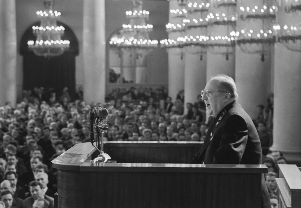 Роман Руденко во время обвинительной речи в Колонном зале Дома союзов на открытом судебном заседании Военной коллегии Верховного суда СССР по делу американского летчика Френсиса Гарри Пауэрса. Фото: Владимир Савостьянов / ТАСС