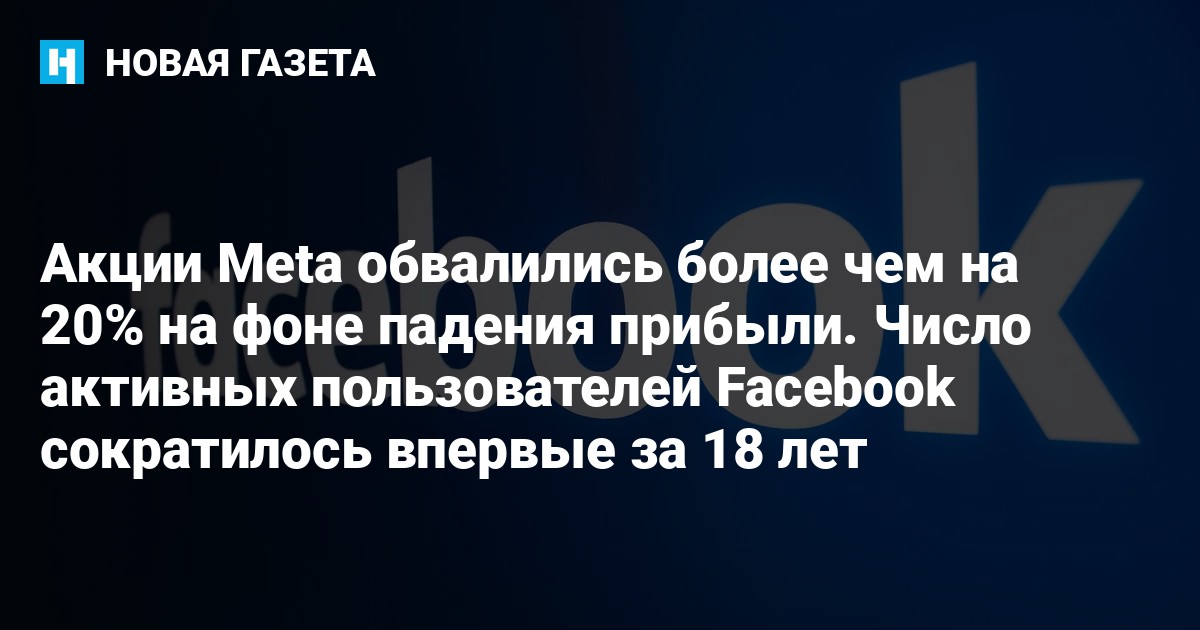 Акции компании Meta Platforms Inc., которая владеет соцсетями Facebook и Instagram, а также мессенджером WhatsApp, обвалились более чем на 20% в ходе расширенных торгов на бирже в Нью-Йорке. Впервые за 18-летнюю историю соцсети у Facebook снизилось количество ежедневных активных пользователей (DAU), сообщает «Би-би-си» со ссылкой на отчет компании за последний квартал 2021 года.
