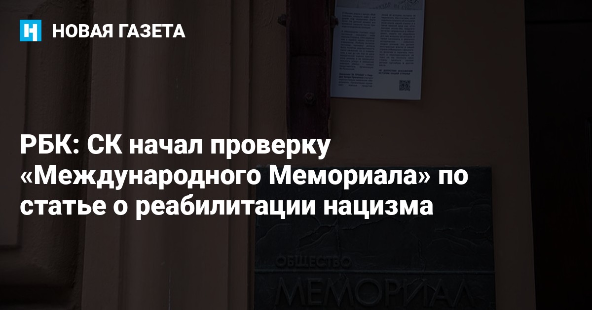 Следственный комитет (СК) начал проверку международного общества «Мемориал»* по статье о реабилитации нацизма (354.1 УК). Об этом сообщает РБК со ссылкой на источники в правоохранительных органах.