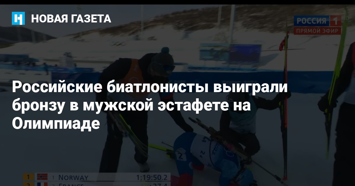 Российские биатлонисты заняли третье место в мужской эстафете на Олимпийских играх в Пекине.