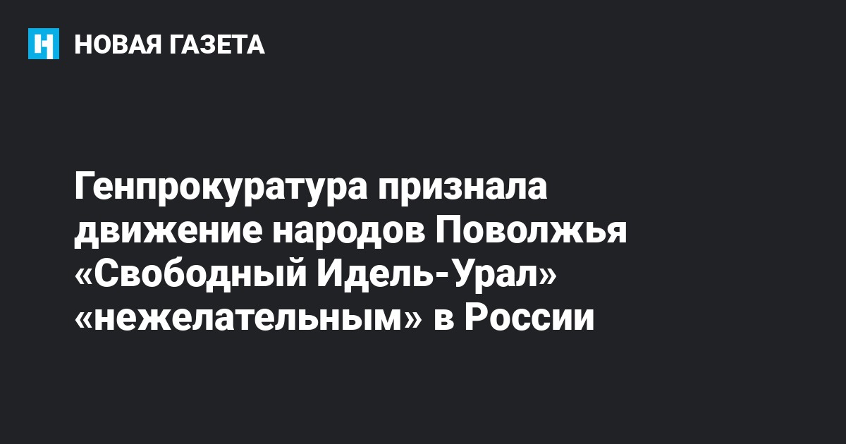 Генеральная прокуратура России признала «нежелательным» движение представителей народов Поволжья «Свободный Идель-Урал». Об этом сообщается на сайте ведомства.
