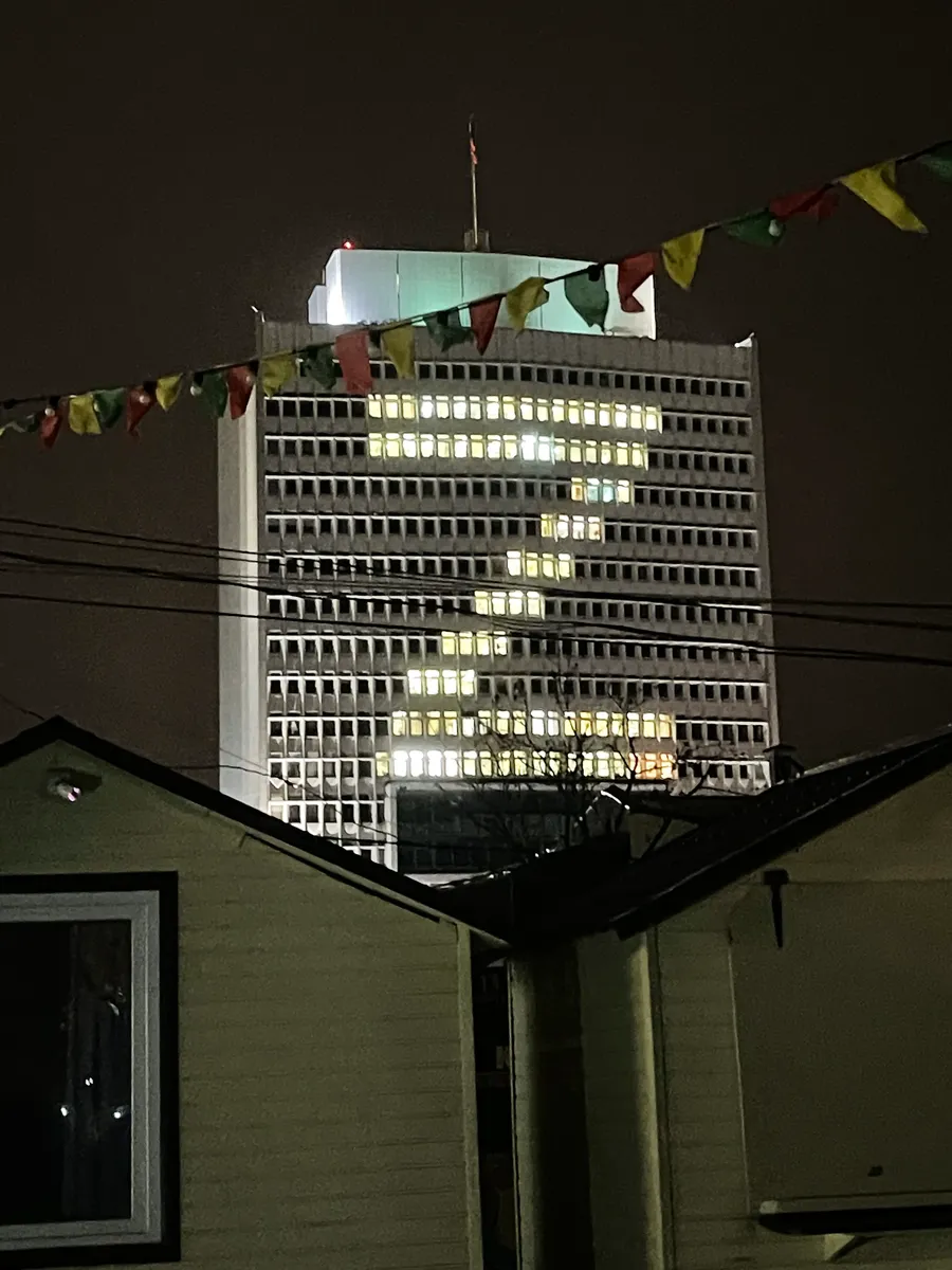 Нормальную льдину угнали около 200 человек в бухте Парис на острове Русском. Ребята как-то водрузили на нее даже ларек с национальной приморской едой — пян-се (пахнущие метров за 300 пирожки с мясом и капустой на пару), танцевали и выстроились в число 2022. Было весело. А на материке, около Токаревского маяка, в это время собрались делать то же самое в поддержку спецоперации около 30 человек — при поддержке администрации города. Они высадились на льдину, нарисовали триколор и букву Z, но сил что-то угнать, увы, не хватило. Зато чаю из самовара выпили.