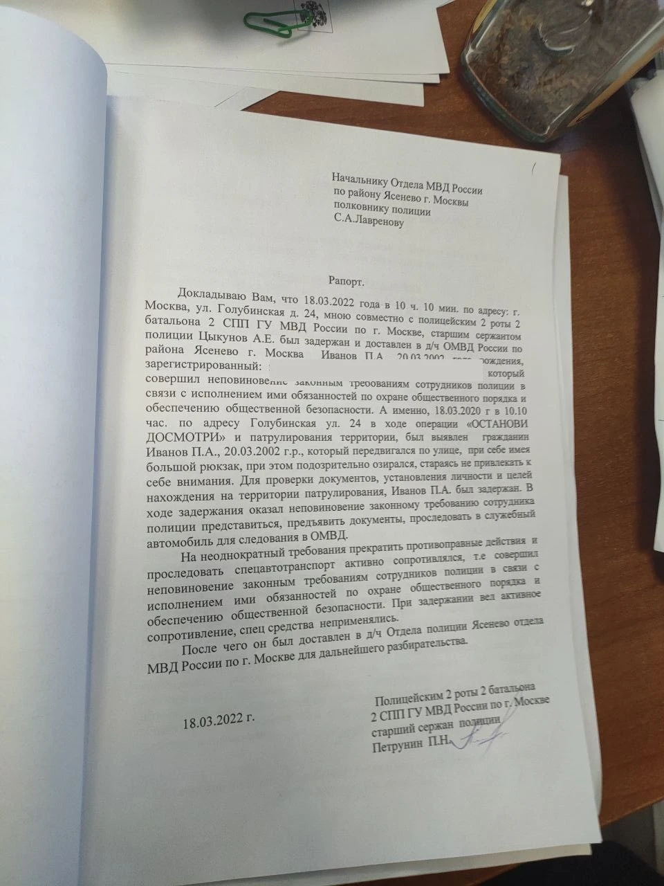 По данным издания, силовики дождались, когда Павел Иванов выйдет из дома перед концертом, посадили его в автомобиль без полицейских опознавательных знаков, а затем в протоколе указали, что фотограф отказался предъявить документы. Аналогично, у дома задержали и Руслана Терехова — в его протоколе говорится, что журналист «отказался показать содержимое кофров с объективами».