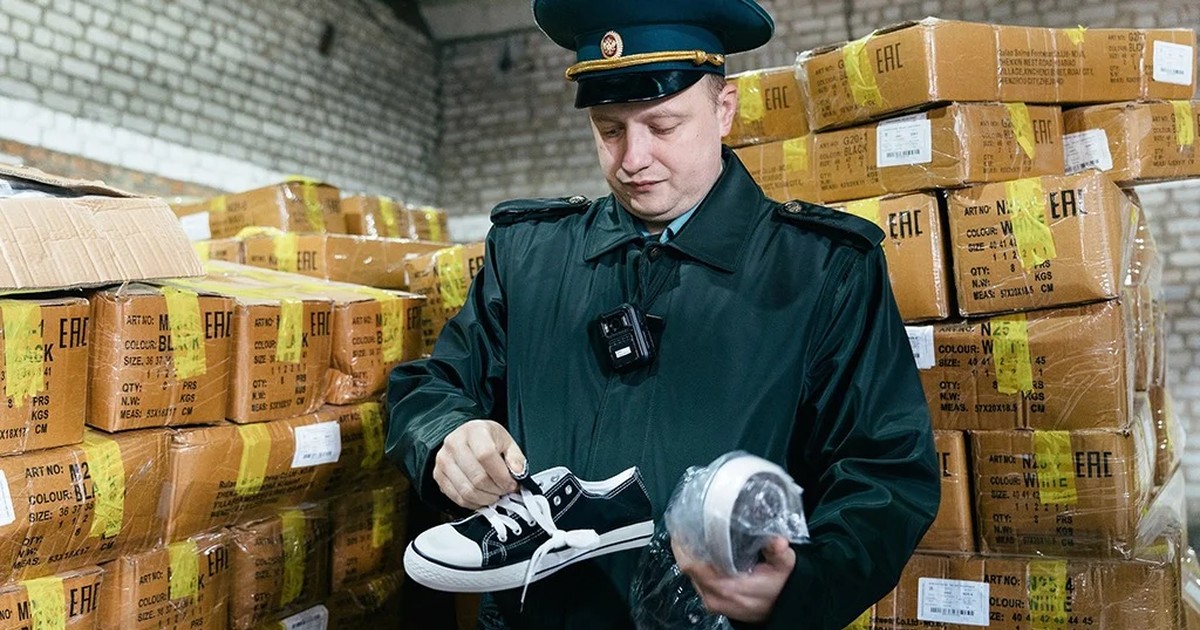 Таможенник рассматривает конфискованные товары. Фото: пресс-служба ФТС