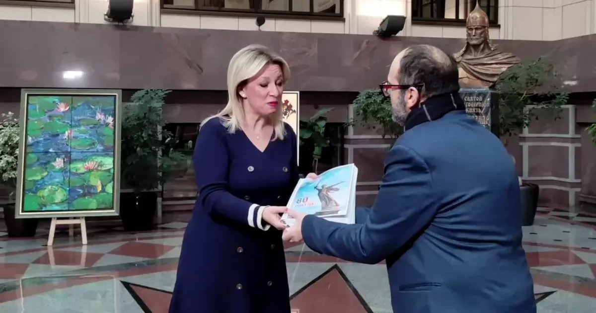 Петиция на итальянской платформе Petizioni.com набрала 25 тысяч подписей. Ее распечатку передали в руки Захаровой. На обложке — открытка с эмблемой Родины-матери, российского государственного символа 80-летия Победы в Великой Отечественной войне. Итальянец Винченцо Лоруссо, инициатор петиции, как сообщается, живет сейчас в Луганске.