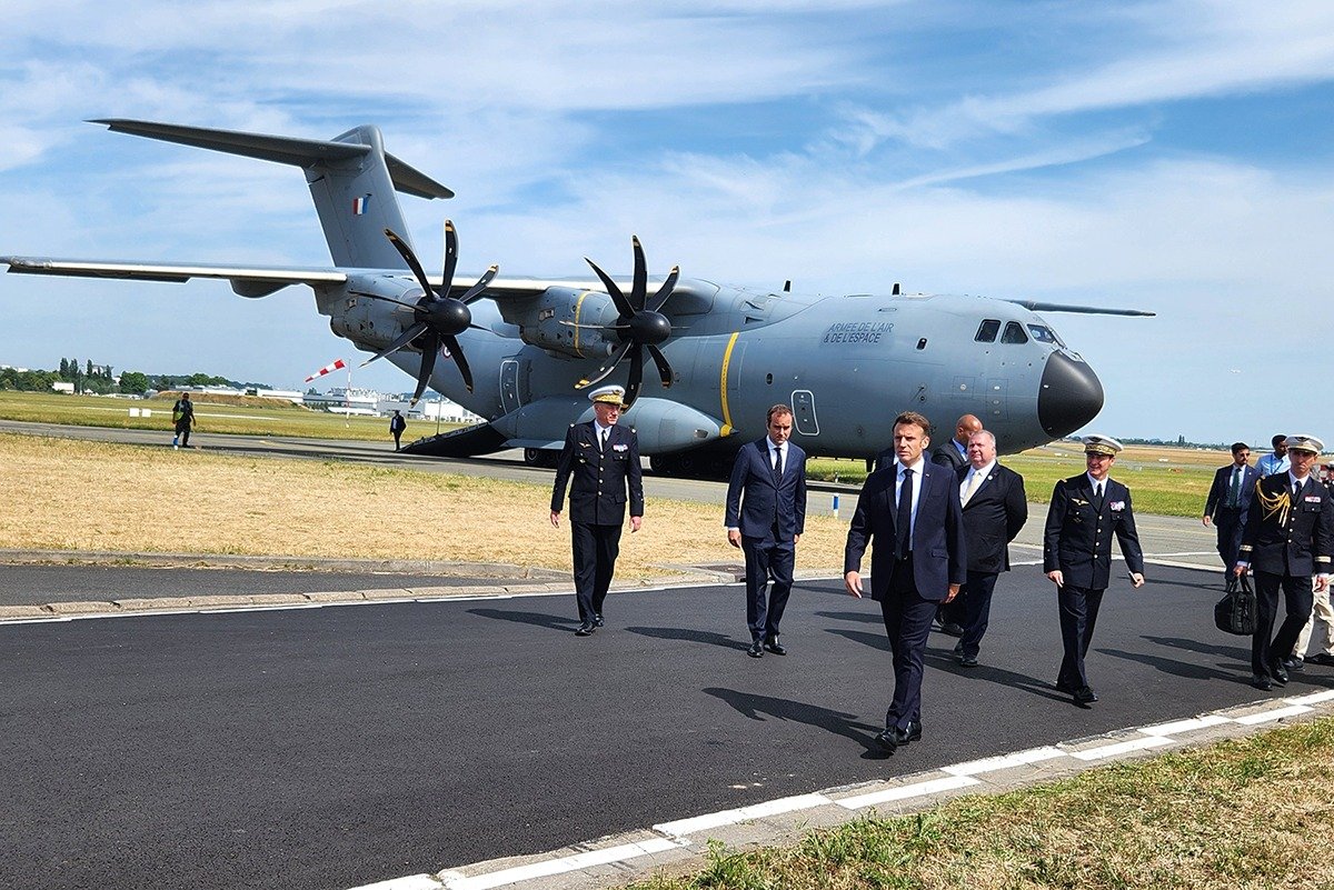 Вопрос был задан утром 20 июня на поле в Ле-Бурже, куда Макрон вместе с министром обороны Лекорню, генеральным делегатом по вооружениям Шивой и другими высокопоставленными лицами только что прилетел на военно-транспортном Airbus A400M — желая таким образом напомнить стране, что на европейском континенте идут военные действия и забывать об этом не следует.