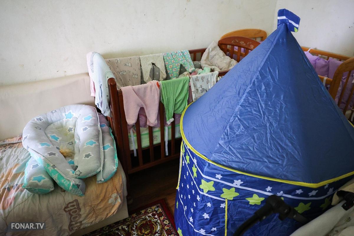 Все их большое семейство размещается на 33 квадратных метрах. Свете 28 лет, ее старшей дочери — десять, а младшим близняшкам всего по пять месяцев. Все дети родились уже в этом доме, который Света получила в 2015 году. За время жизни успели поставить опоры для забора и разбить небольшой огород. Большая часть участка в восемь соток не задействована.