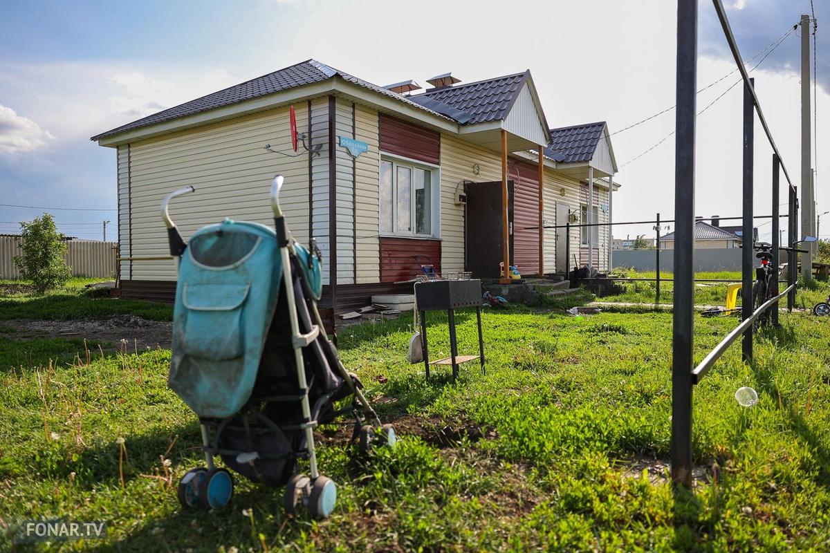 Мы делаем на машине круг по микрорайону. От старых улиц к новым видна вся эволюция в госпрограммы обеспечения жильем детей-сирот. Самые первые дома — на одного хозяина и с участком, дальше на два хозяина, и у каждого достаточно большой участок, на котором поместится пристройка. Многие поселенцы того периода так и расширились. Дома последних лет и возводимые по улице Новоселов уже на четыре хозяина и без участков — только лужайка вокруг и место для парковки. До приватизации нельзя даже поставить забор, а сажать растения особо негде. Оттого улица Новоселов выглядит неуютно пустой с любого ракурса по сравнению с раскидистой зеленью на старых улицах.