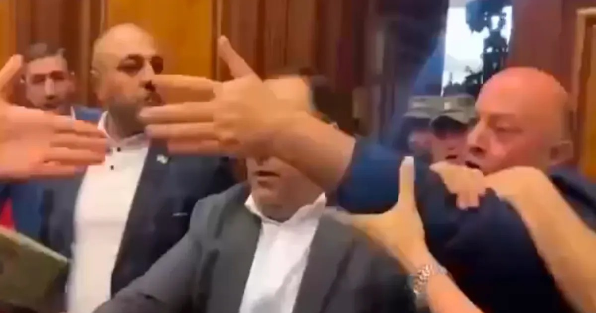 Судя по видео из зала заседаний, в конфликт попытались вмешаться сотрудники Службы государственной охраны, однако им не сразу удалось разнять стороны.