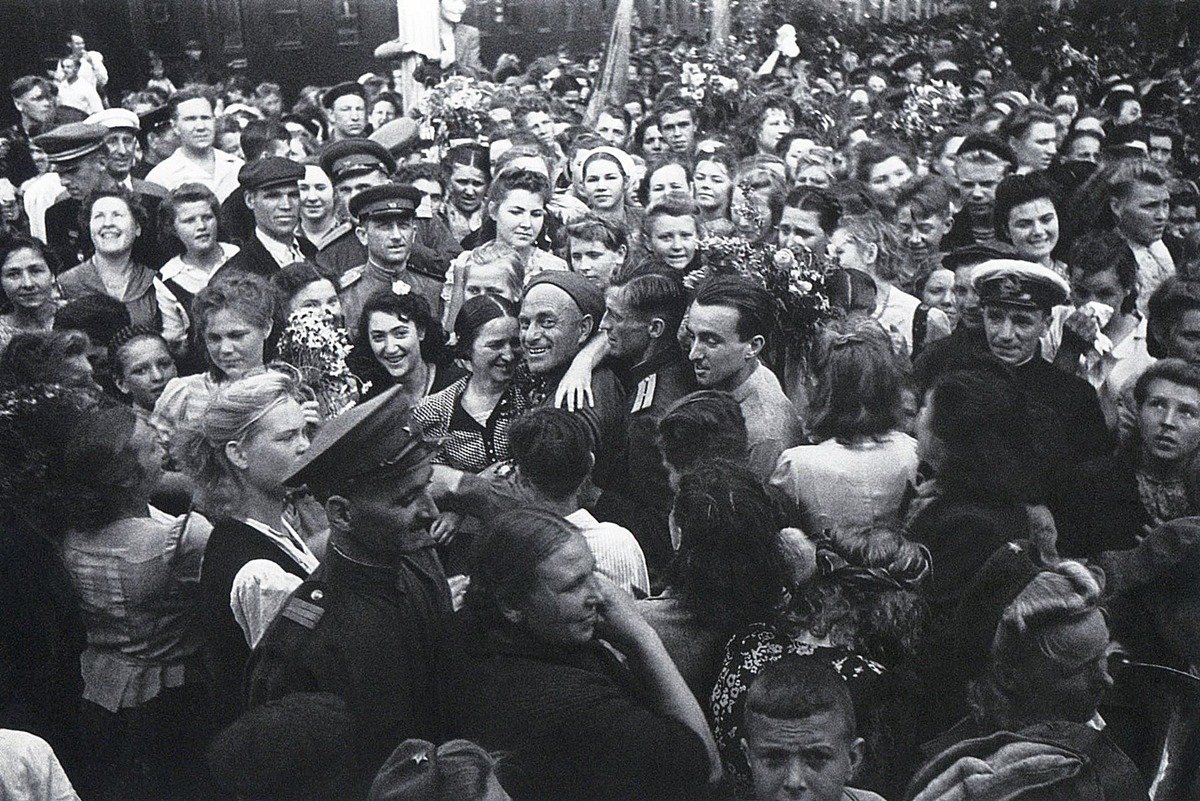 Москва. Встреча воинов-победителей на Белорусском вокзале, 1945 год. Фото: Аркадий Шайхет