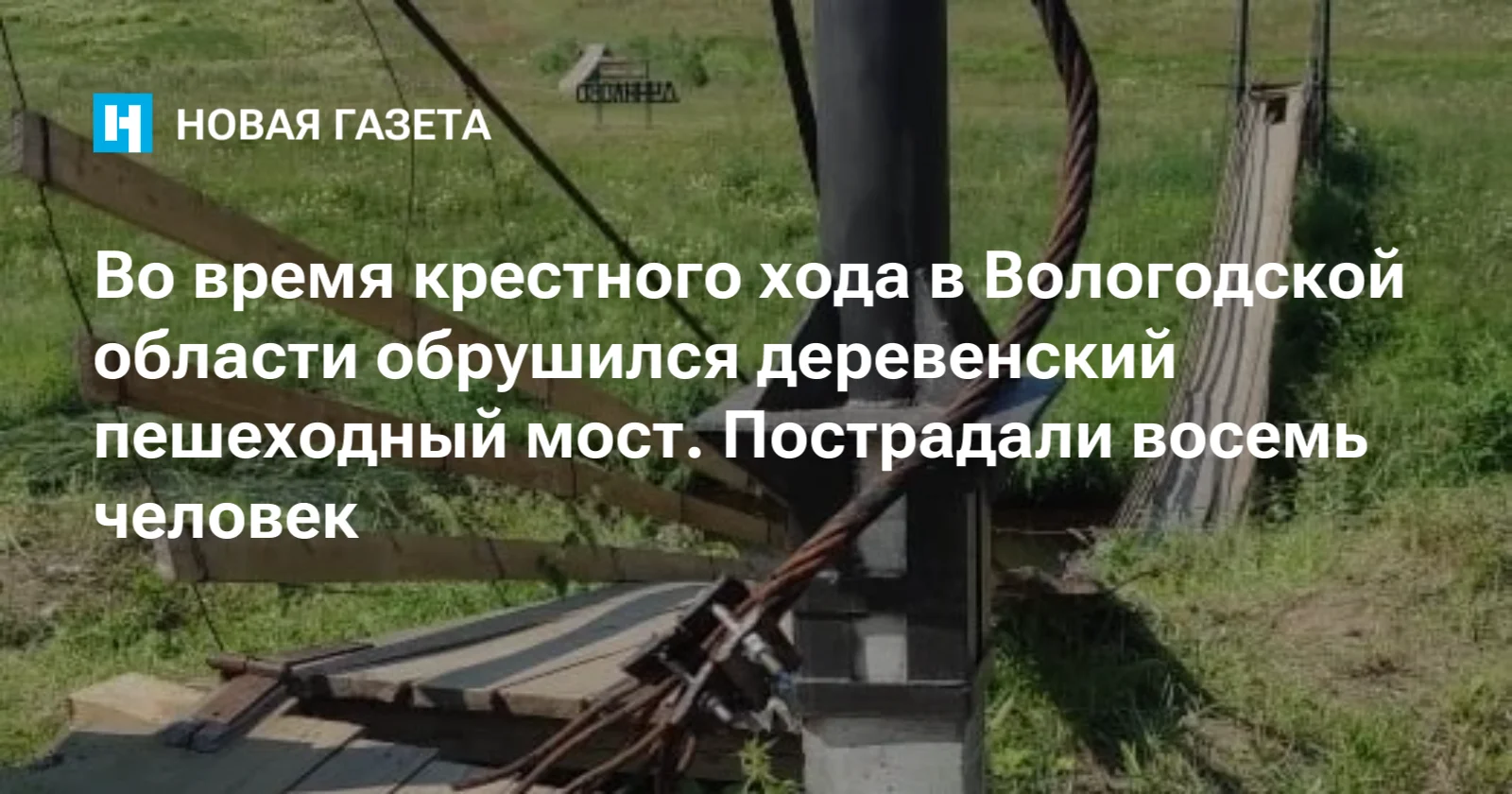 В Вологодской области во время крестного хода между деревней Дунилово и поселком Дуниловский в Никольском муниципальном округе обрушился пешеходный мост через реку Юг.