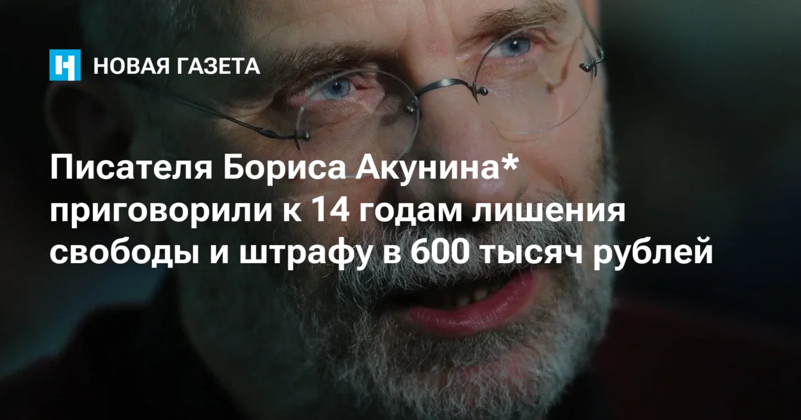 Суд постановил признать Акунина виновным по всем статьям и приговорил к 14 годам лишения свободы, из которых 4 года он должен провести в тюрьме, а остальное время — в исправительной колонии строгого режима. Кроме этого писателю запретили администрировать электронные ресурсы и присудили два штрафа: 200 тыс. р. — по статье 205.1 о содействии террористической деятельности, и 400 тыс. руб. — по статье 330.1 об обязанностях иноагентов.