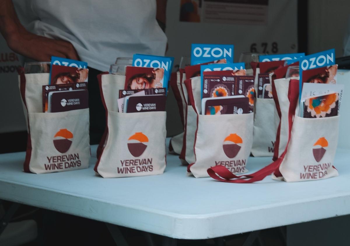 Брендированный набор посетителя фестиваля — сумочка, бокал, купоны и путеводитель. Фото: Диана Гарибян